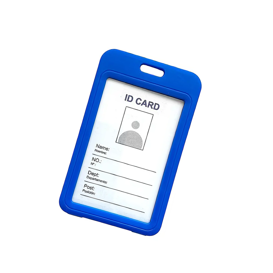 PORTATARJETA RÍGIDA DOBLE CARA PARA TARJETAS DE 5,4CM X 8,5CM. TRANSPARENTE, AZUL.